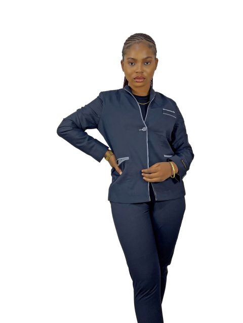 V-Neck Shirt with smart breast pocket, featuring arm length shirt and full length trousers.