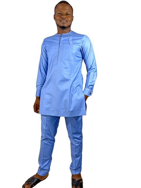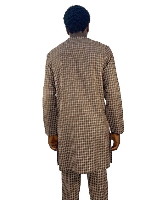 Brown and white check long sleeves men’s senator with front button lock and full length trousers