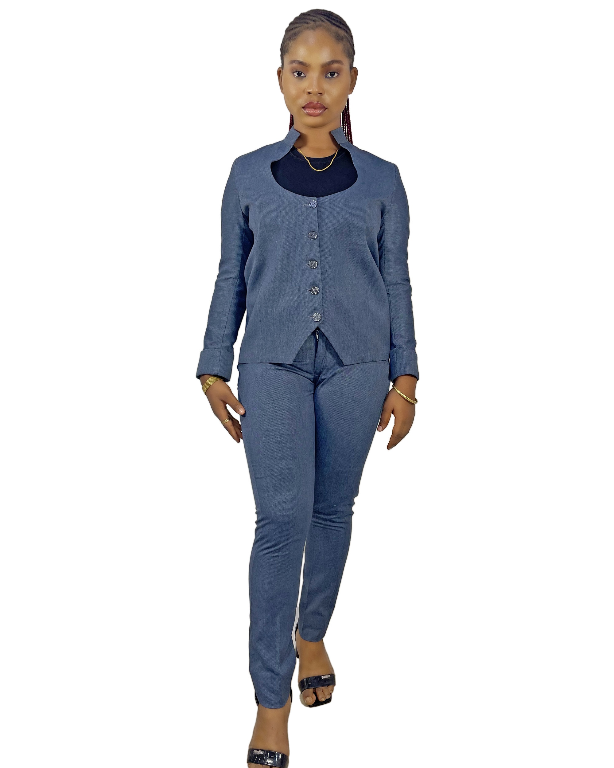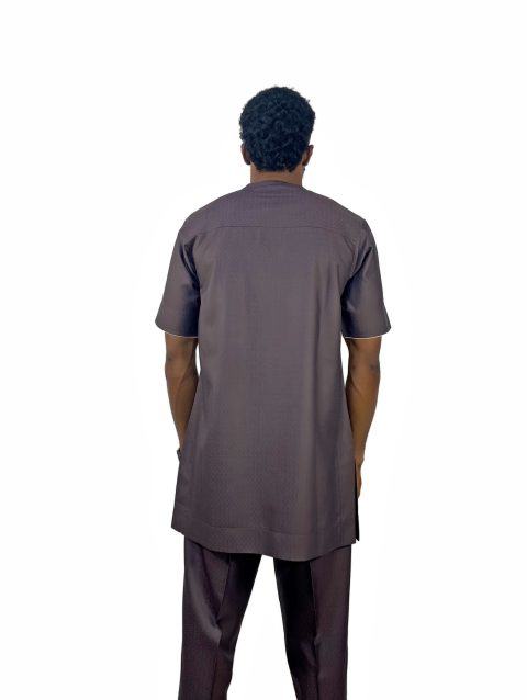 Short Sleeves shirt with little styled sleeves end and breast pocket, featuring front chest length button lock and full length trousers.