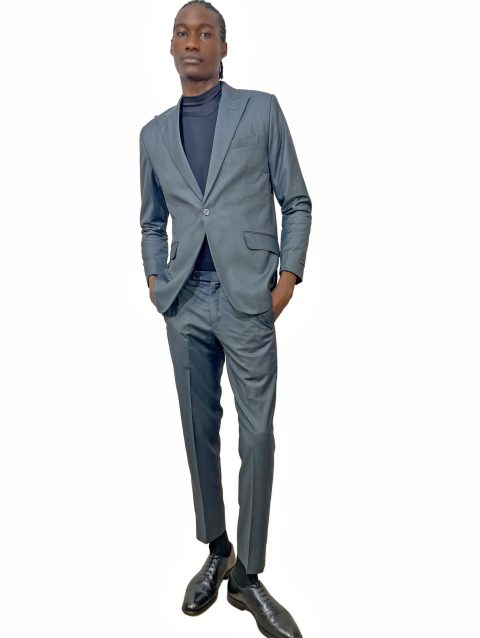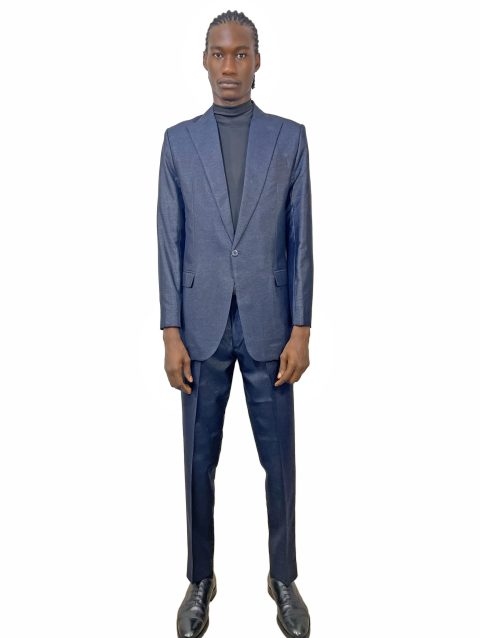 Long Sleeves Purple Suit with, mixed white and black satin design on collar and one side of suit top, and full length pants.