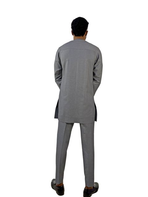 Long Sleeves Senator with touch of black featuring flare drop on front of shirt with full length trousers and shoulder zip lock.